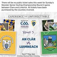 and the Banner Bonanza monthly draw, Clare GAA are giving away 2 tickets to Clare v Limerick this weekend at Zimmer Biomet Pairc Chíosóg, Ennis.